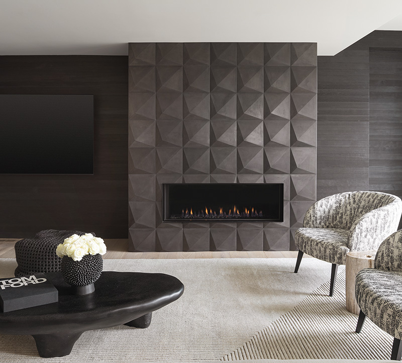 RI: You’re also not afraid to mix textures and materials from wood to a wool-silk rug, to brick, to a metal coffee table. Your work looks clean and modern, but never cold.