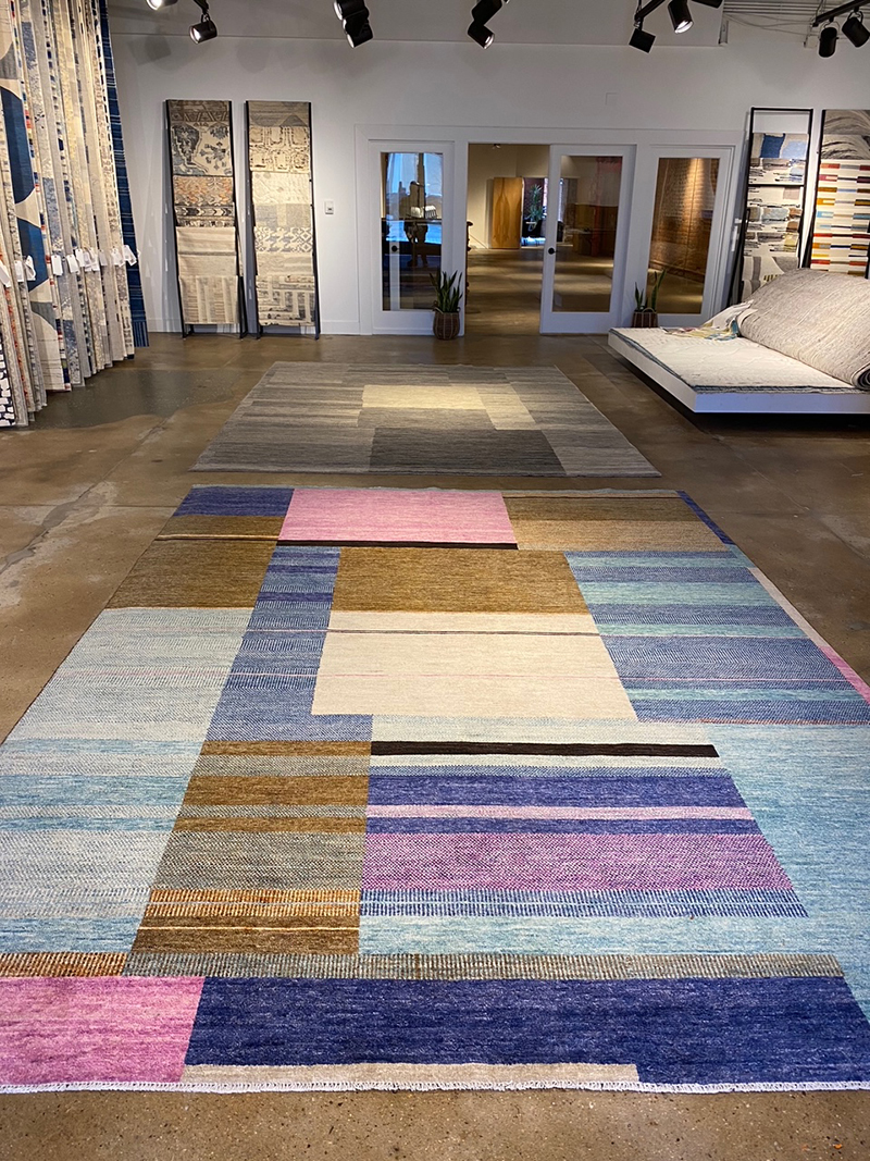 At Bokara, the company continued to show new designs—President Jonathan Soleimani said the company typically releases four to 12 new designs each market. The company is moving away from viscose and toward wool and pale tones. Designs introduced at Bokara this market also touched on the trend of brighter colors or pops of colors in rugs, as it displayed rugs with vibrant blues, yellows and reds in both traditional and abstract styles.