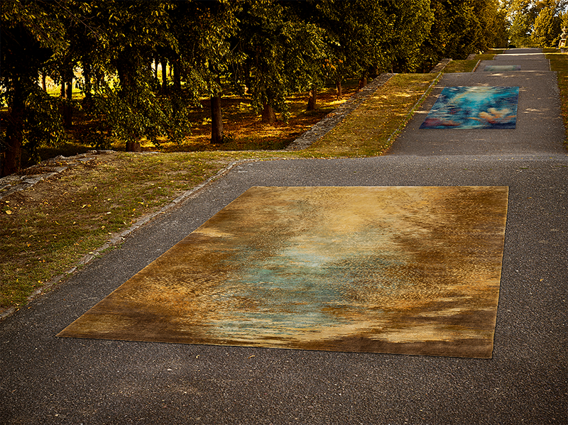 Jan Kath rugs are knotted by hand in Nepal, knot by knot, over a period of several months. The use of Tibetan highland wool, Nepalese nettle, and the finest Chinese silk gives each piece an incomparable texture and a subtle sheen that highlights the depth of the design. The DOTO model shown here measures 2.5 × 3 meters — custom sizes and color requests are possible at any time.