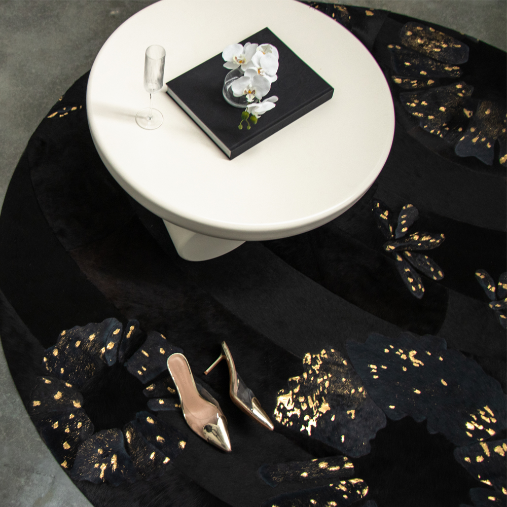 Sasha Bikoff, said, “Art Hide and I really connect over our love and usage of color. When learning about the artisan construction of Art Hide rugs I was inspired by fashion driven patterns by Dolce and Gabbana in the 90s and quilts from the 70's hippie era. With these new releases, it's exciting to see how just using one single color can still produce a myriad of shades like facets of a gemstone across a single rug,”.